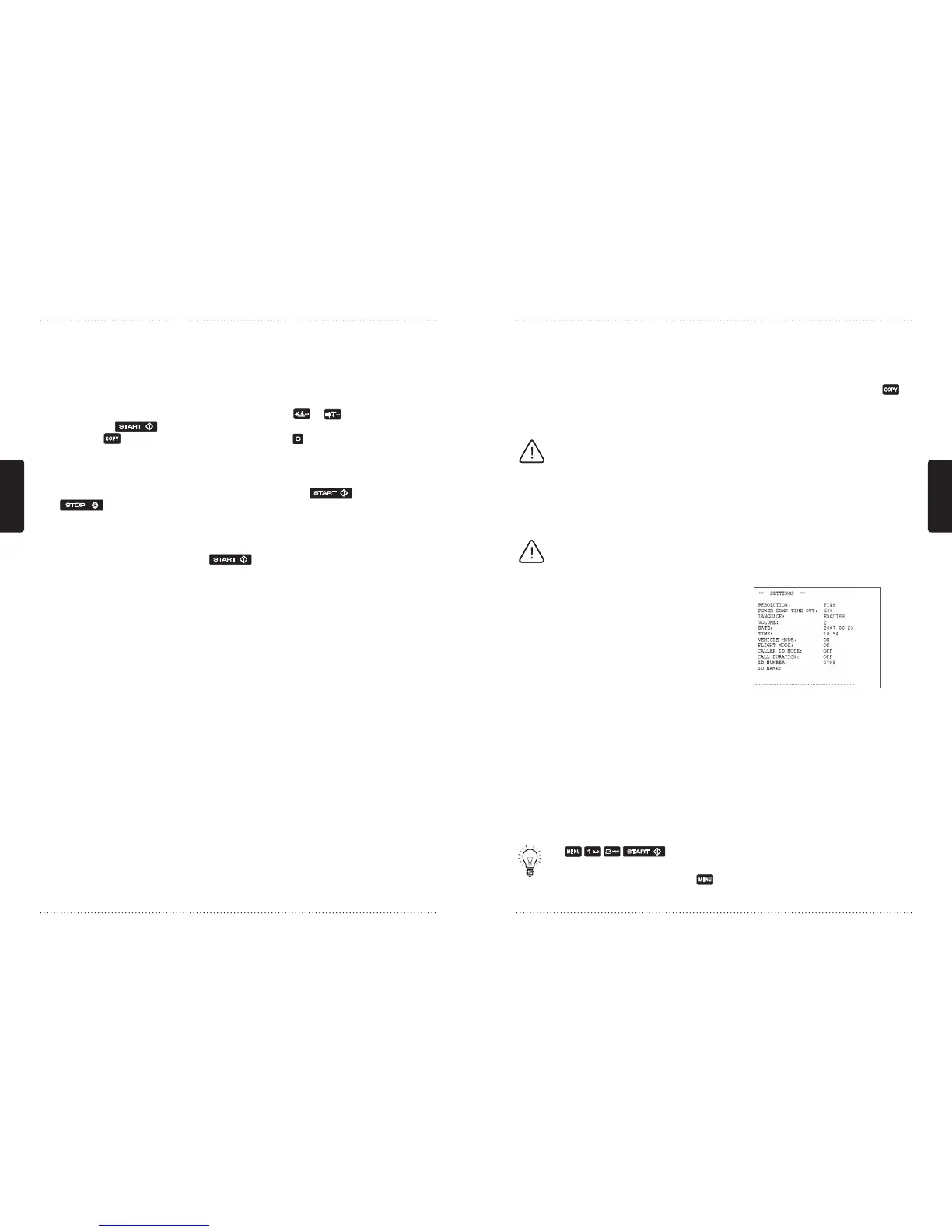 NOTE: cette fonction requiert que le fax soit alimenté et ne fonctionnera pas si
