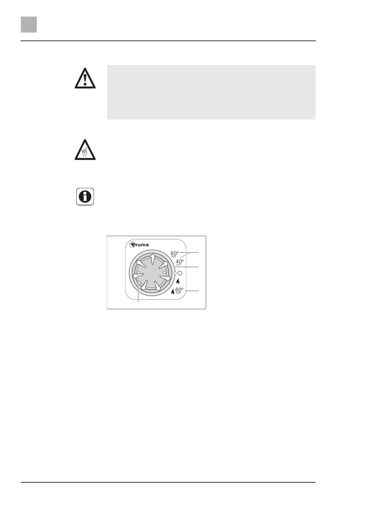 The water in the boiler can be heated up to 60 °C. Risk of scalding!