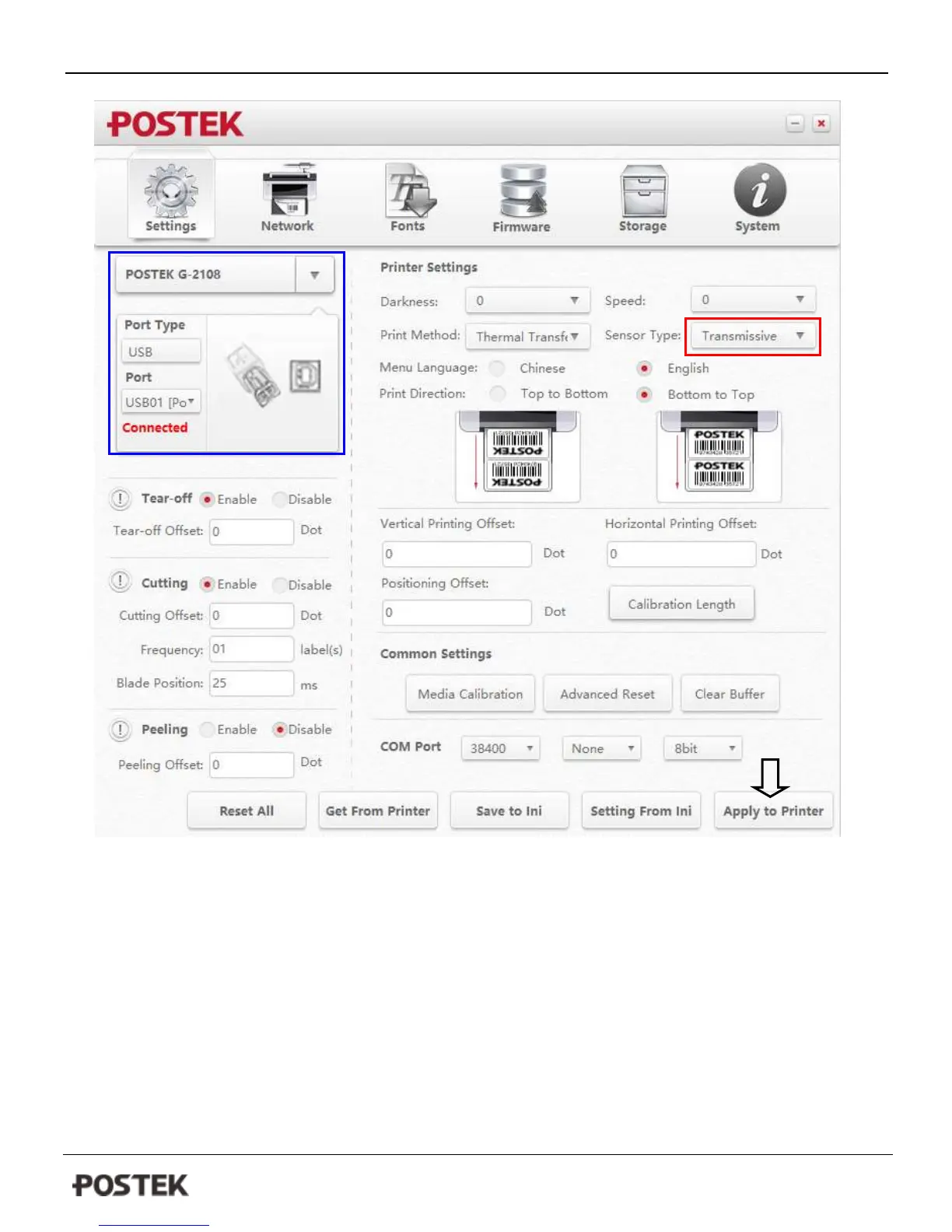 5. Click “Apply to Printer” button to apply the setting to printer;