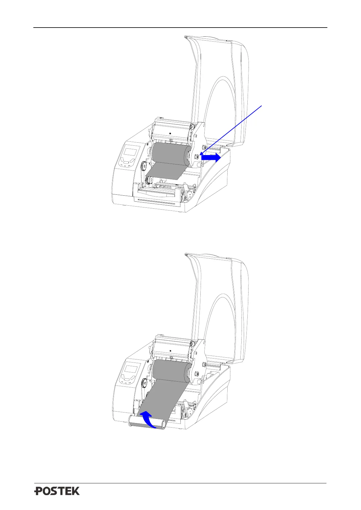 6. Route the ribbon through the Printhead Module and wrap the end of the ribbon around the spare