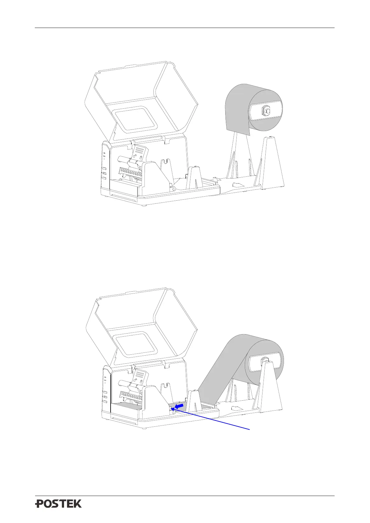 7. Thread the media under the Media Guide Rod, over and pass the Platen Roller to the front of
