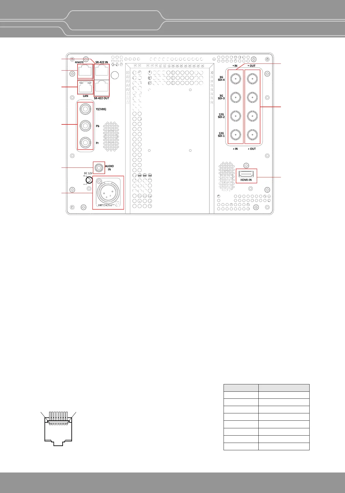 Input connectors for SDI signals. For details, see “9. Connecng the SDI Signals”(page 32).
