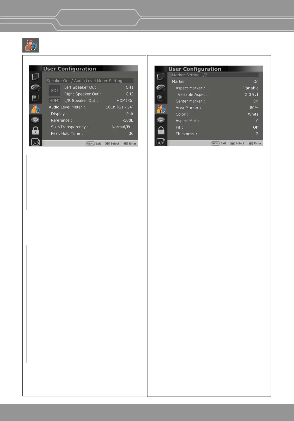 User Conguration Menu