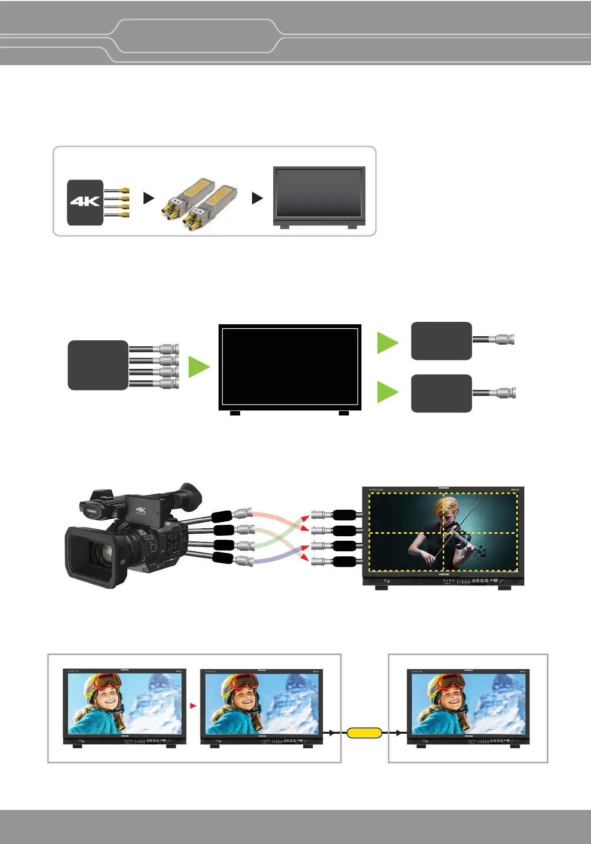 single link 12G-SDI or the scaled down 3G-SDI. This funcon enables you to monitor the same 4K signal with
