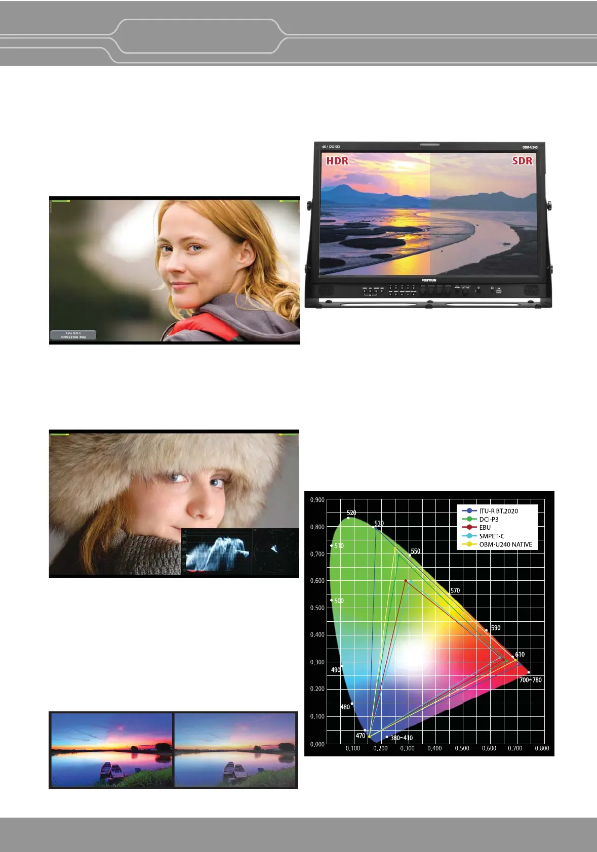 The OBM U/X series supports PQ EOTF (SMPTE ST