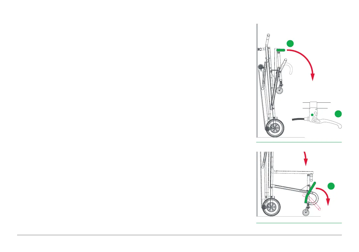 6. Before anyone sits on the chair both brakes must be ‘locked on’. Each brake is ‘locked on’ by