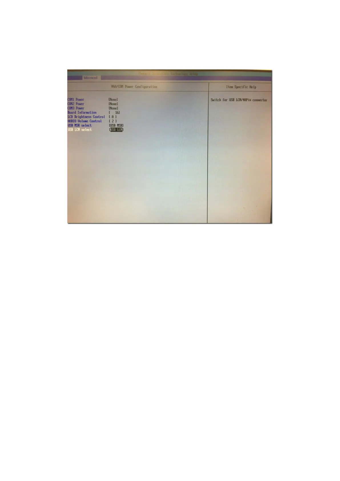 4. To enable the power, select COM1 ,COM2 or COM3 Power setting and press