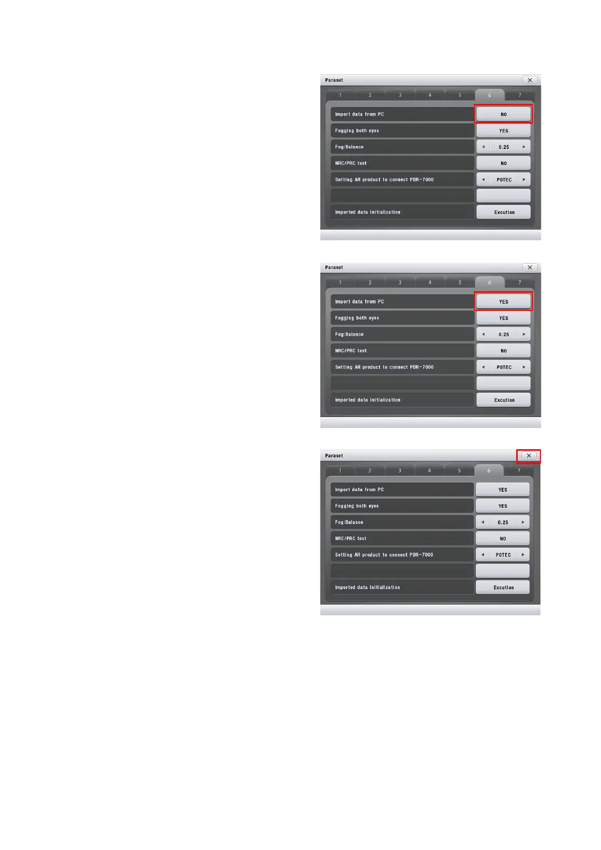 ‘Import data from PC’ as ‘Yes’.