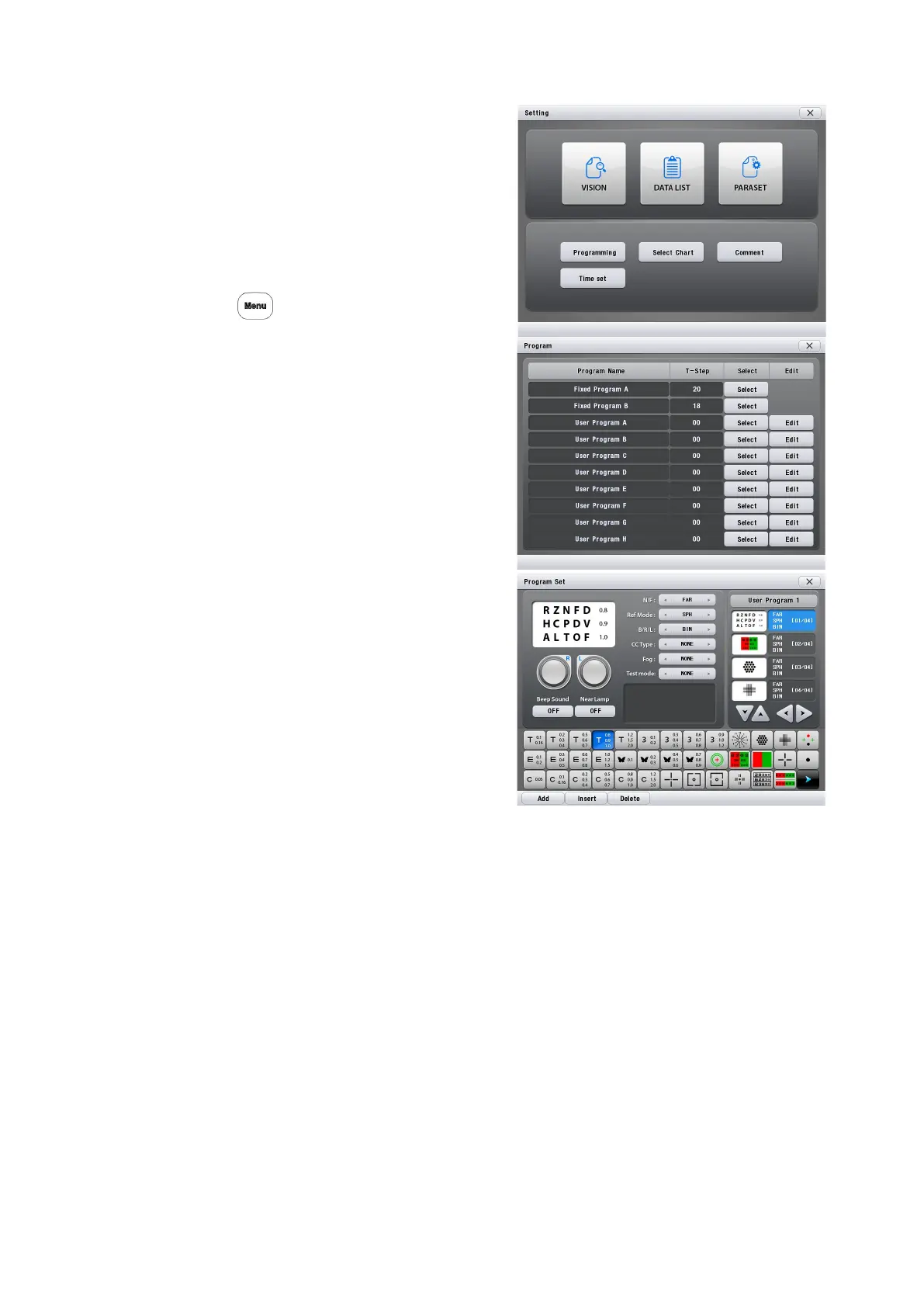• Also set the mask functions (horizontal and vertical lines, single letter) and the red-green