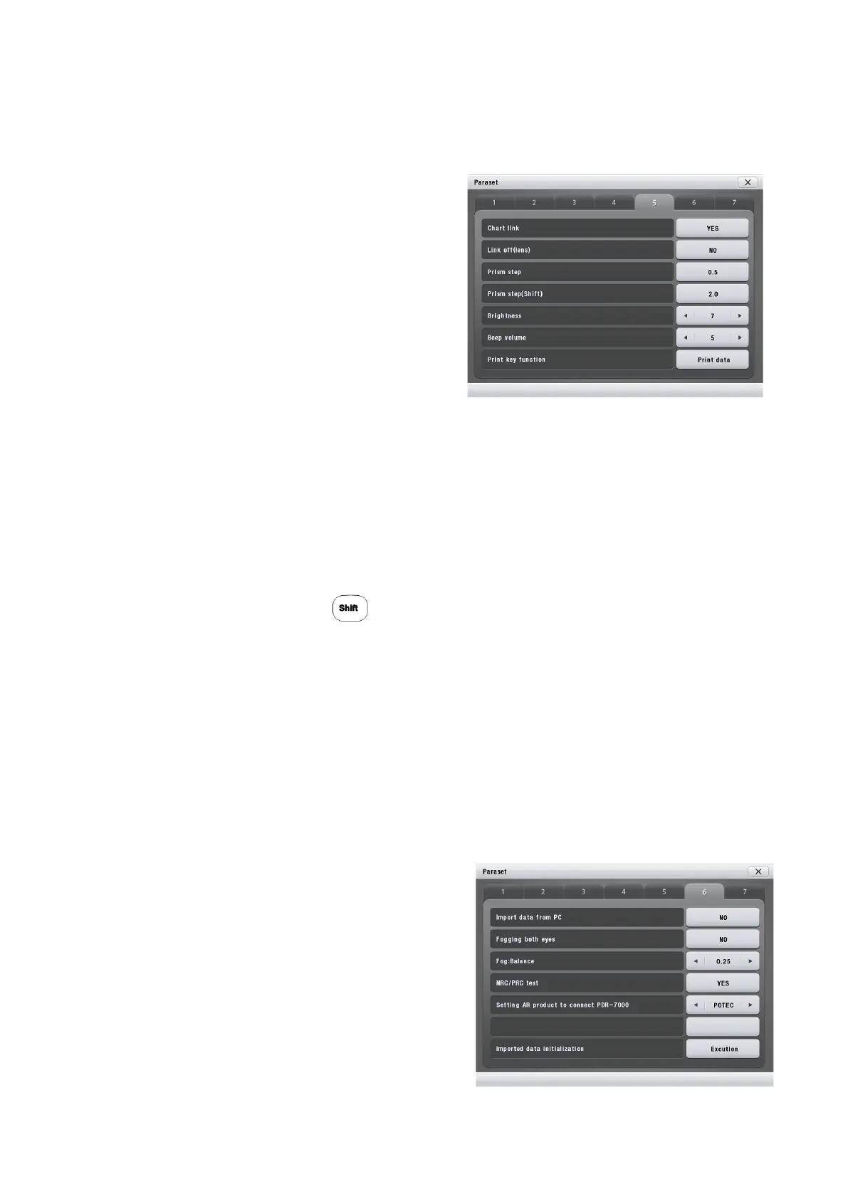 switching between lenses or measure modes (S/C/A/ADD/VA/ PX/PY) according to the selection of