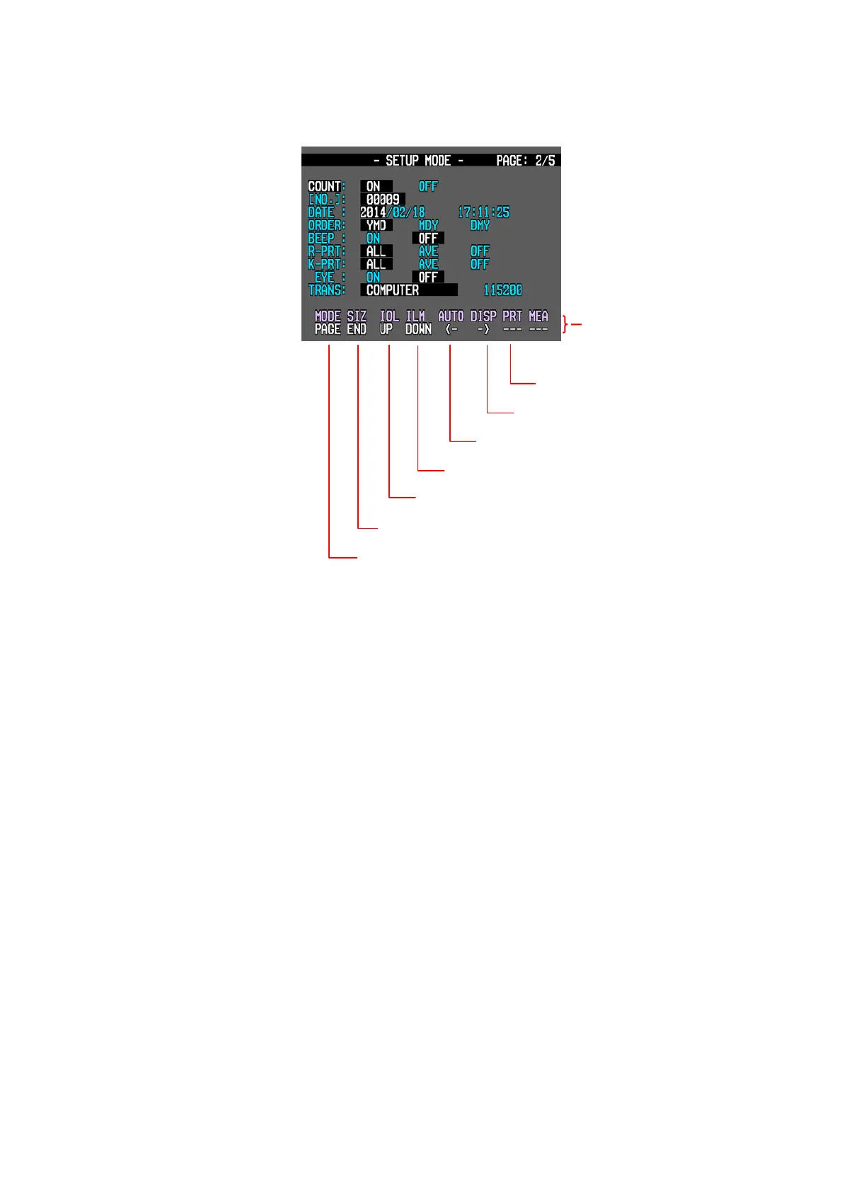 Press SIZE button to quit the SETUP mode and enter the Measurement mode.