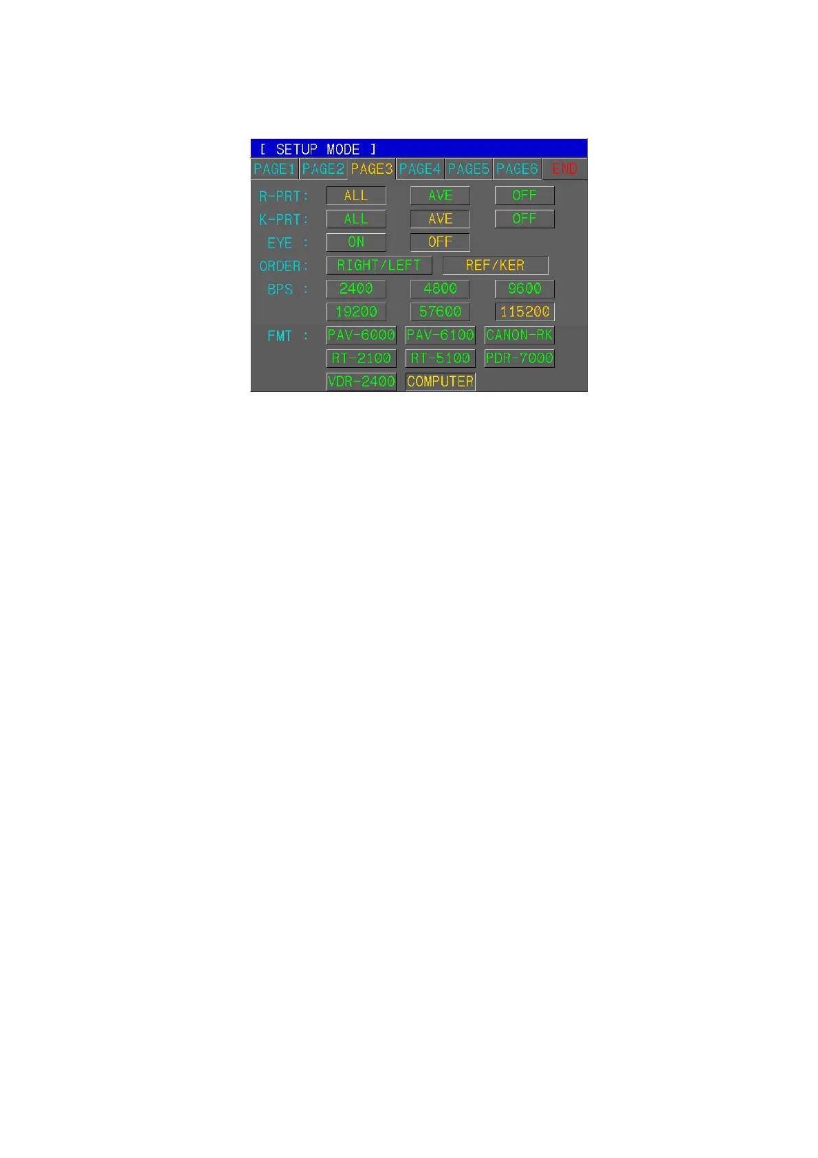 K-PRT Result of Keratometry to be printed out