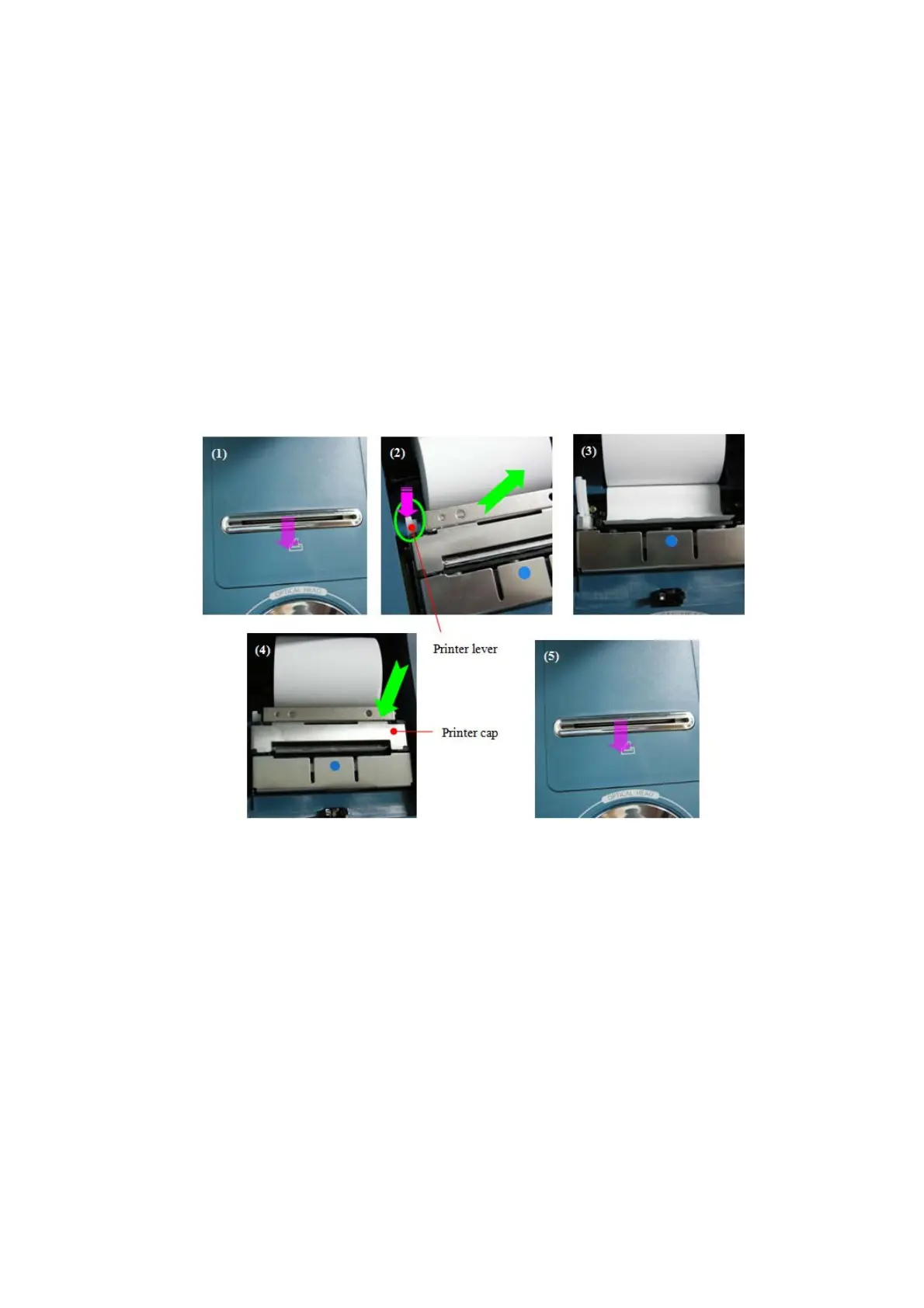 (2) Remove the printer cap after pushing the printer lever, and then take ‘used paper out.