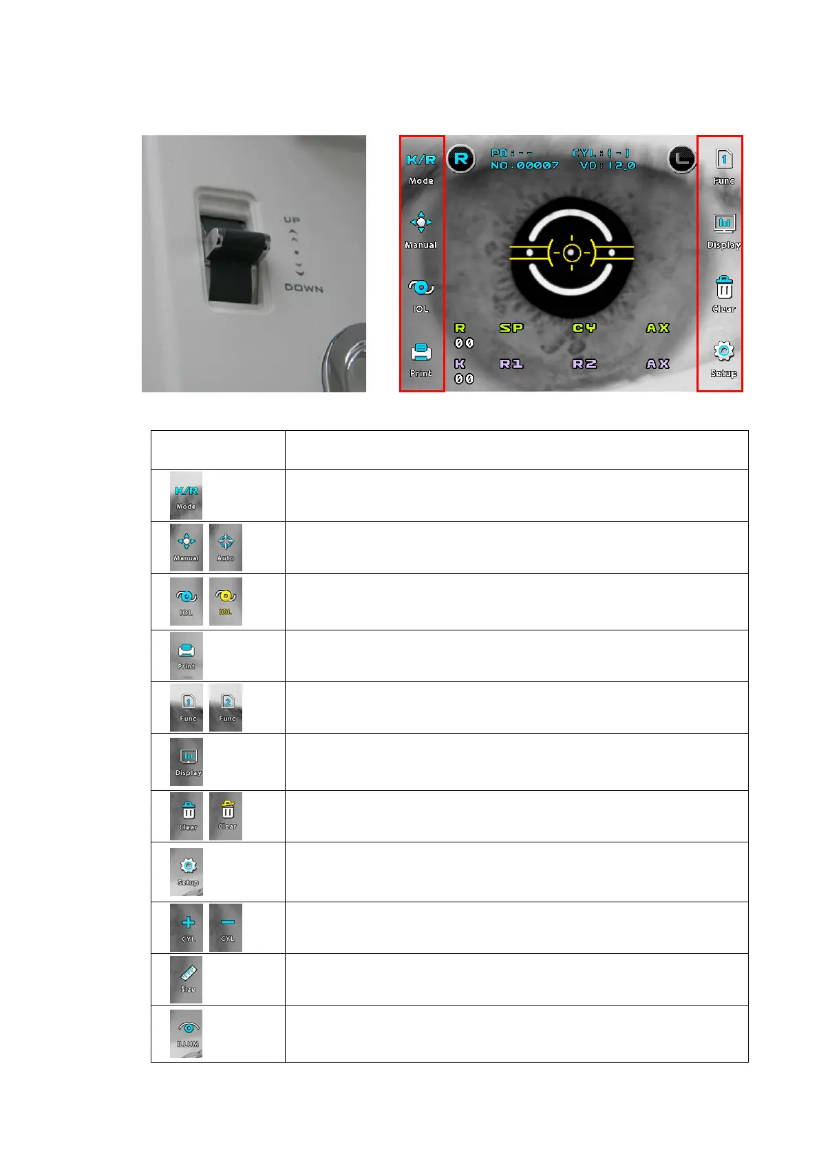 (Touch Button) Press this button when the examinee’s eye is