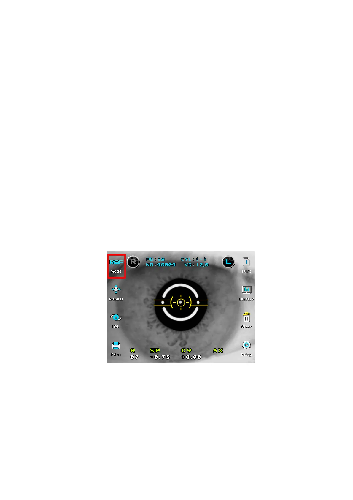 (2) Follow the same procedure (2) of the Continuous Keratometry and Refractometry [K/R
