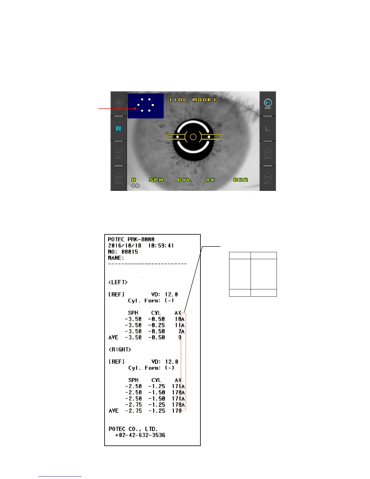 (5) Follow the same procedure (5)~(7) of the Continuous Keratometry and Refractometry