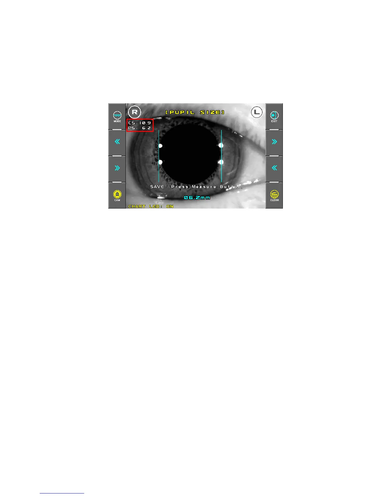 Press the Print button Î The result of corneal diameter, pupil diameter, PD will be