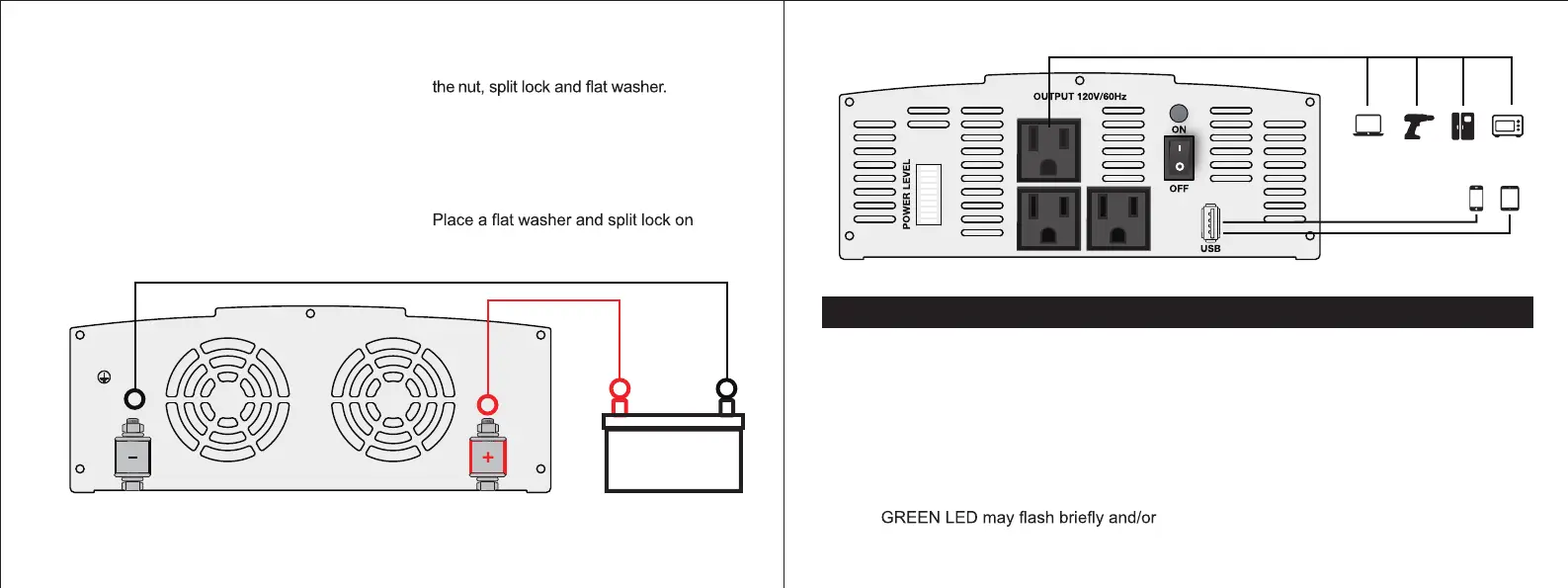 NOTE:Please use the cables we provided, DON'T use battery clamps.
