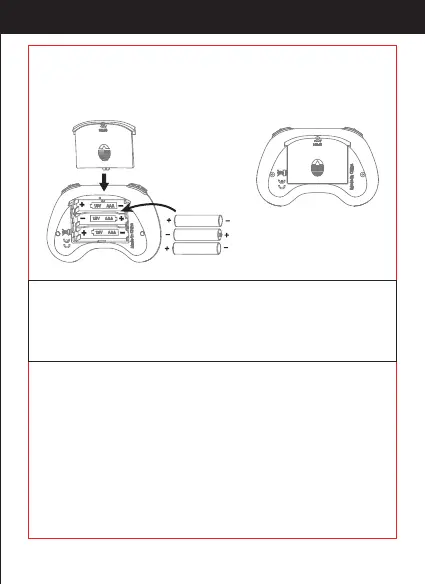 Open the battery cover of the transmitter, insert 3 AAA batteries