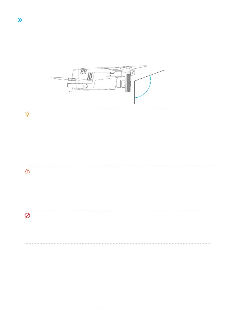 •Each time the drone is powered on, the gimbal tilt angle defaults to 0° (horizontal view). If the gimbal