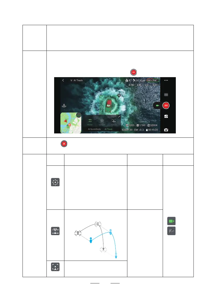 AI Track includes Parallel, Spotlight, and Follow. The drone will y automatically based on the
