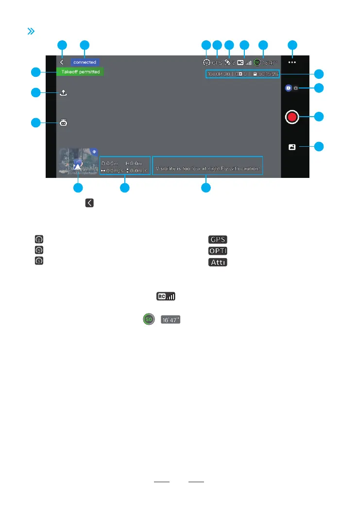 Tap to return to the homepage Display drone status and flight mode