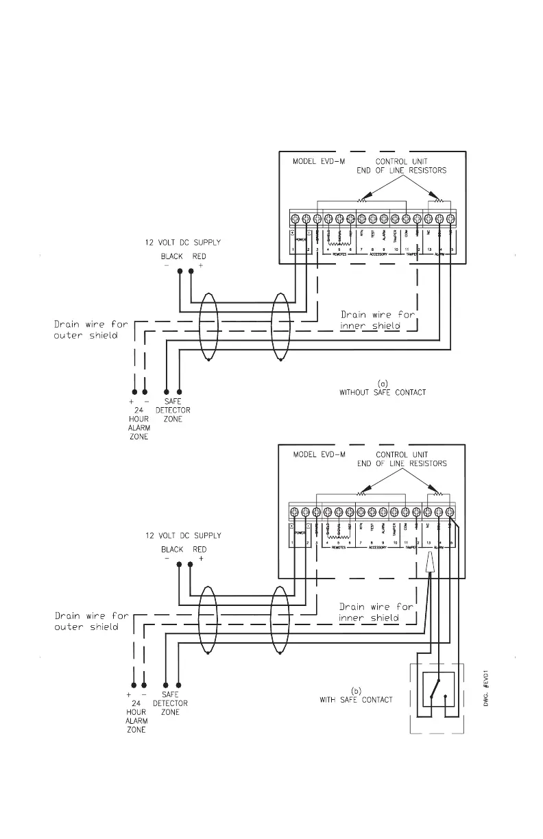 Potter EVD-2 - Recommended Control Panel Wiring with Safe Detector Zone and 24 Hour Alarm Zone