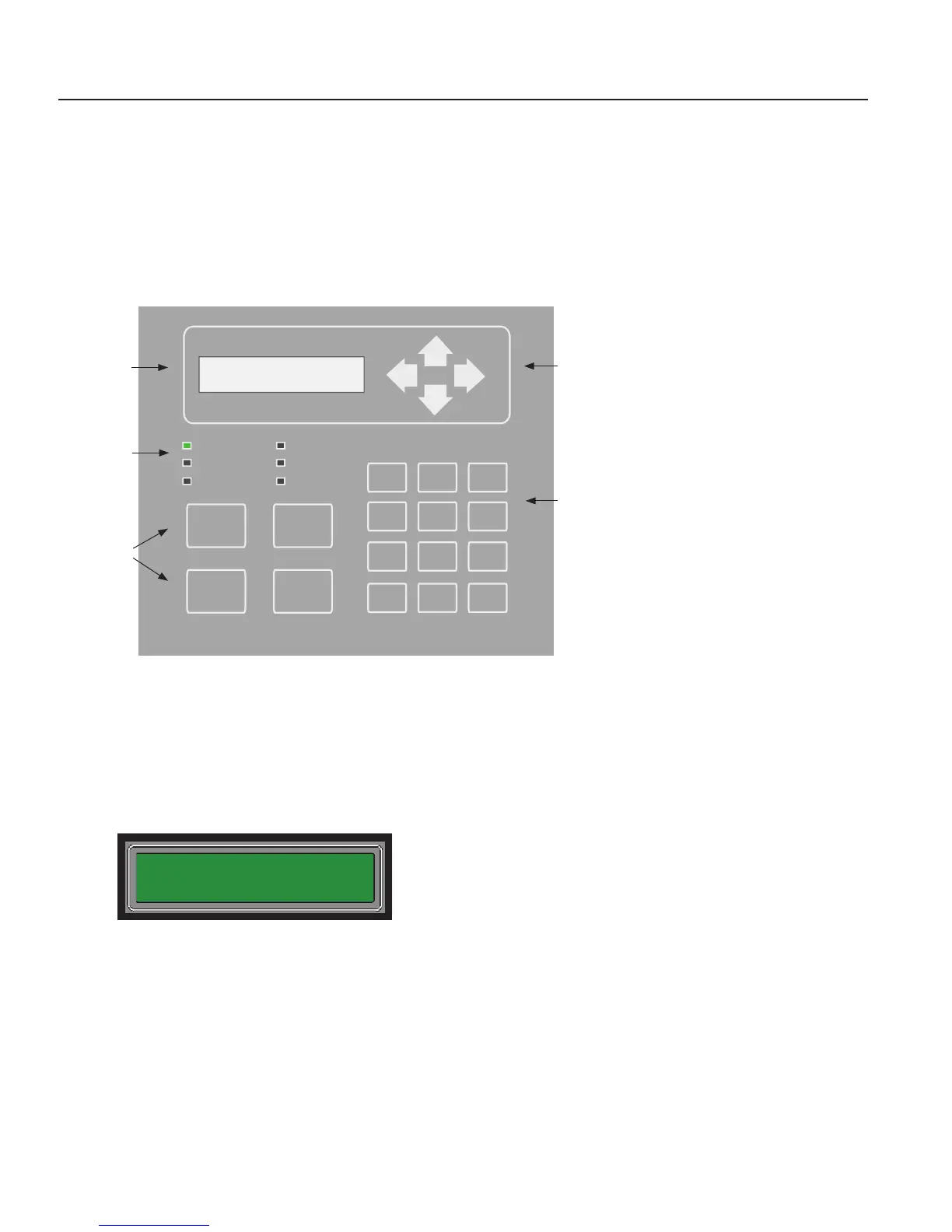 The control panel is comprised of a two (2) line x 16-character LCD display panel, arrow keys, push button function keys, status