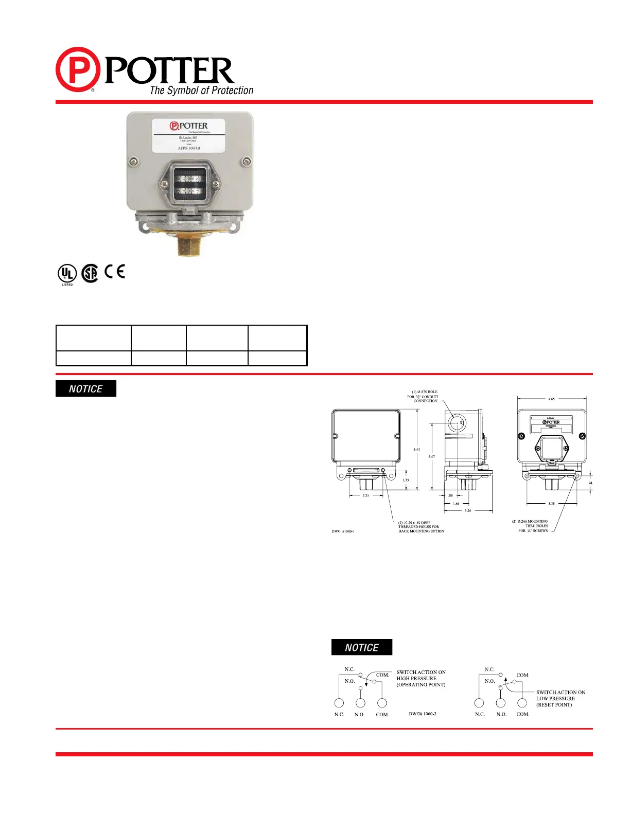Potter Electric Signal Company• 2081 Craig Road, St. Louis, MO, 63146-4161 • Phone: 800-325-3936/Canada 888-882-1833