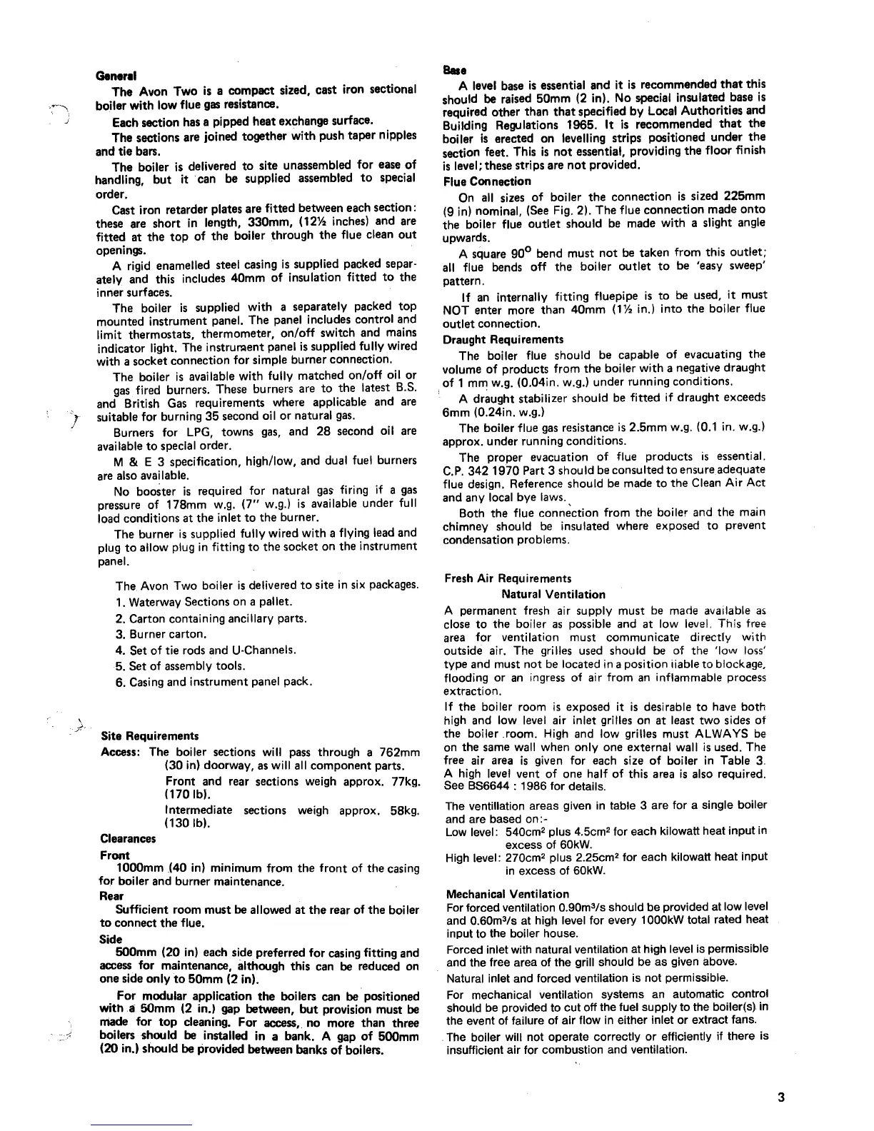 Potterton Avon Two - General; Site Requirements; Clearances; Base