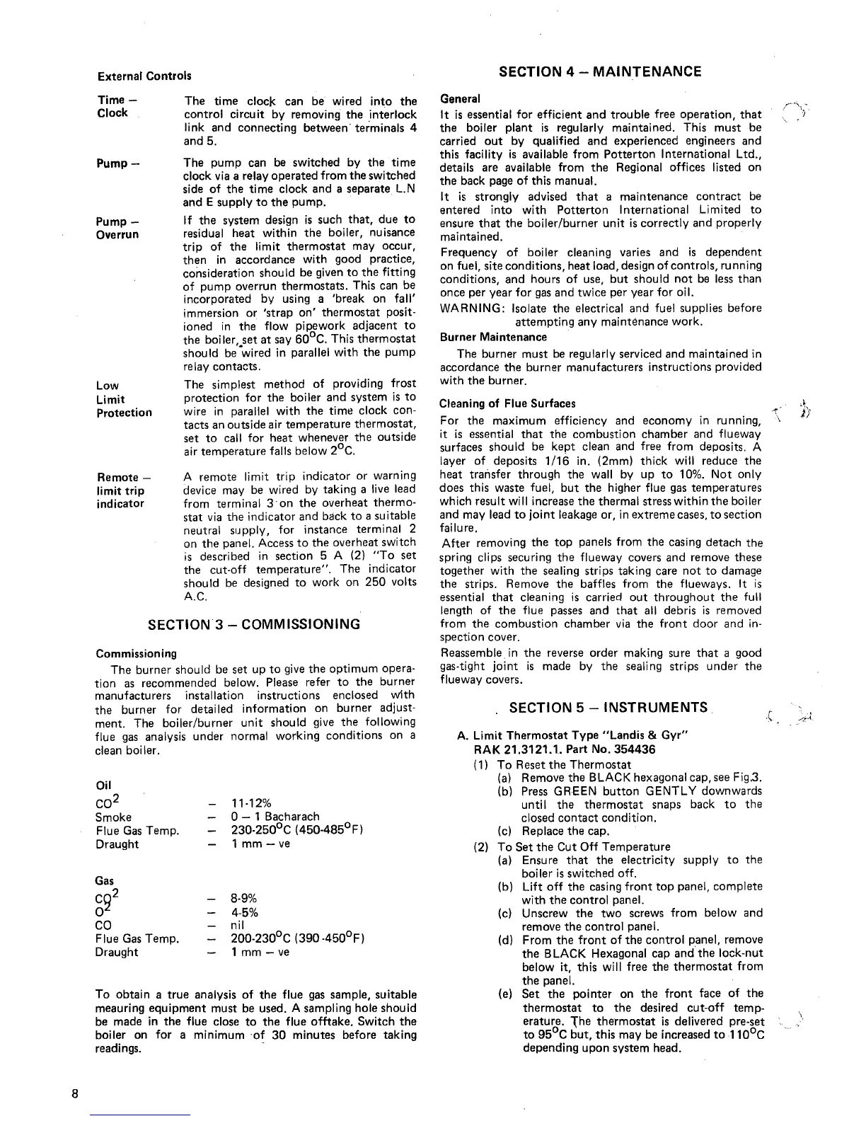Potterton Avon Two - Commissioning; Maintenance; Instruments; External Controls