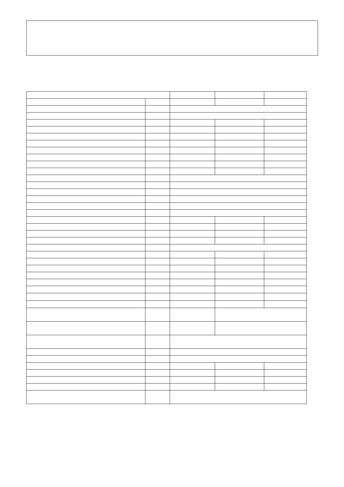 Table 3 – Technical Data