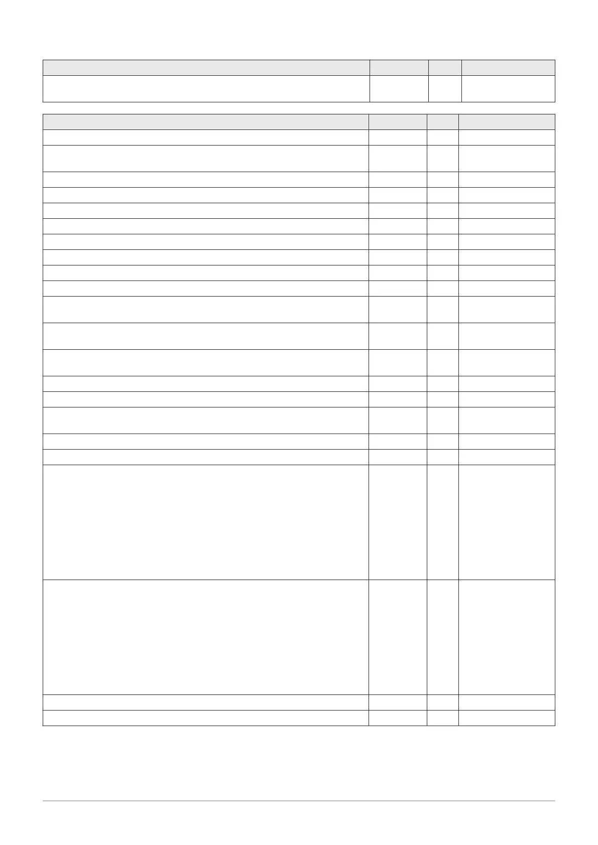 Boiler Prog. no. Level Standard value