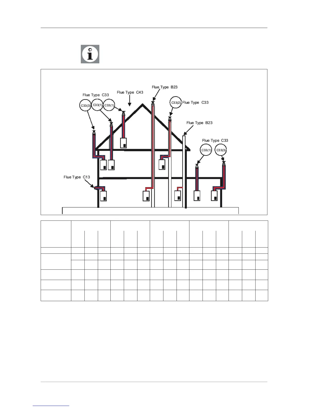 C13 the maximum flue length shown may give an output reduction of 5 % with the maximum flue shown.