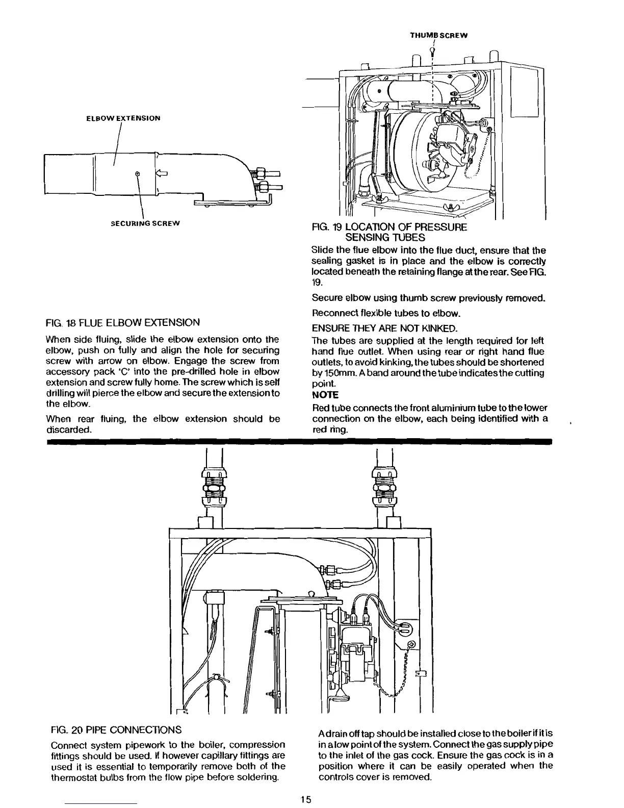 Potterton Prima 40F - Flue Elbow Extension; Location of Pressure Sensing Tubes; Pipe Connections