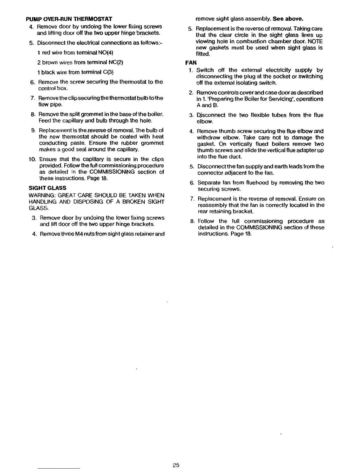 Potterton Prima 40F - Pump Over-Run Thermostat Replacement; Sight Glass Replacement; Fan Assembly Replacement