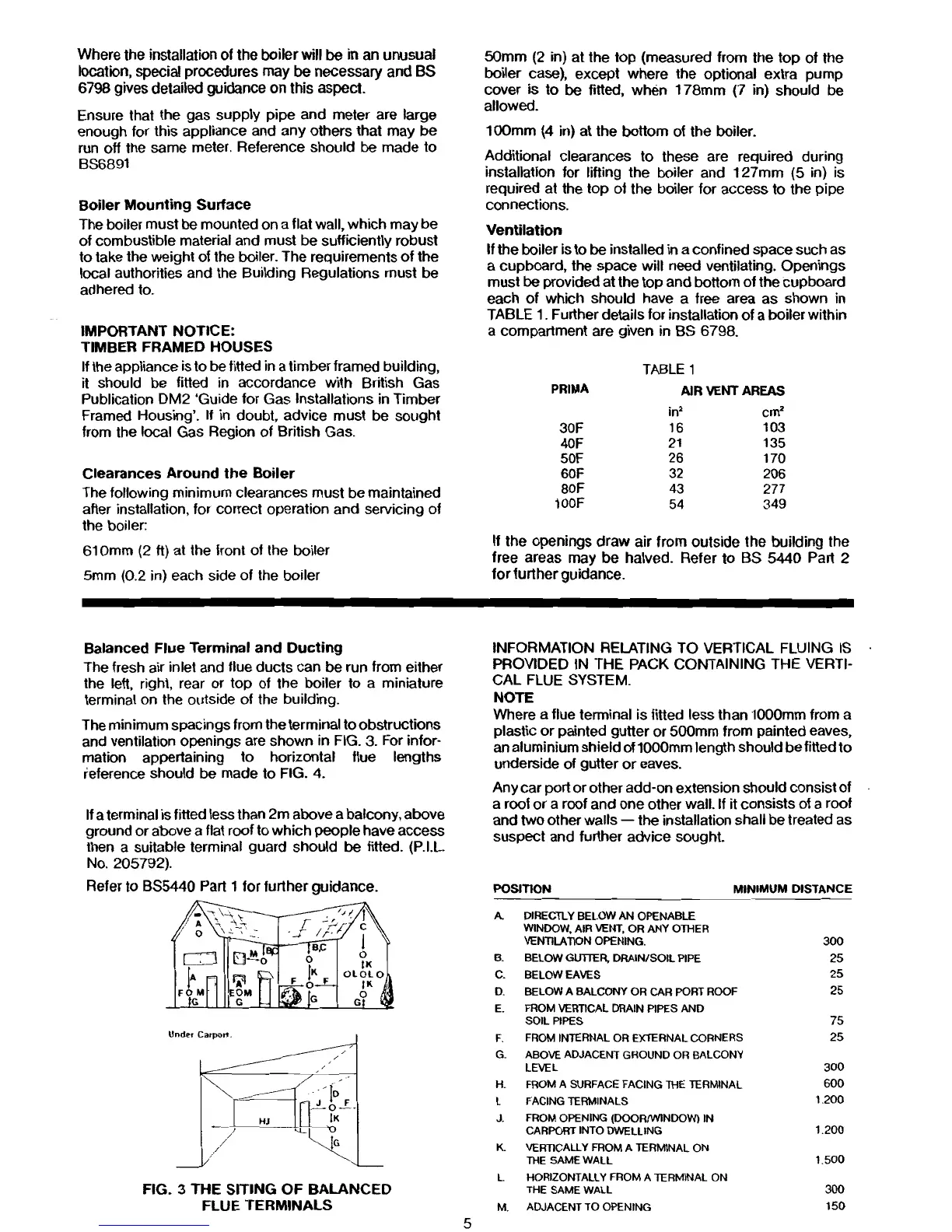 Potterton Prima 50F - Installation Clearances and Ventilation