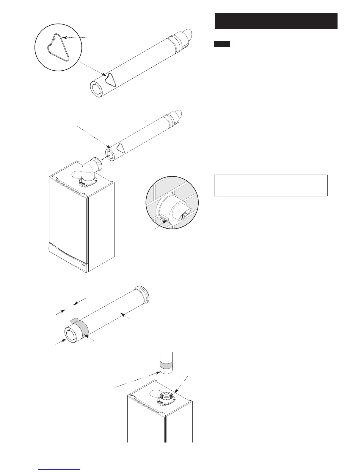 8. Insert the flue through the hole in the wall. Fit the elbow