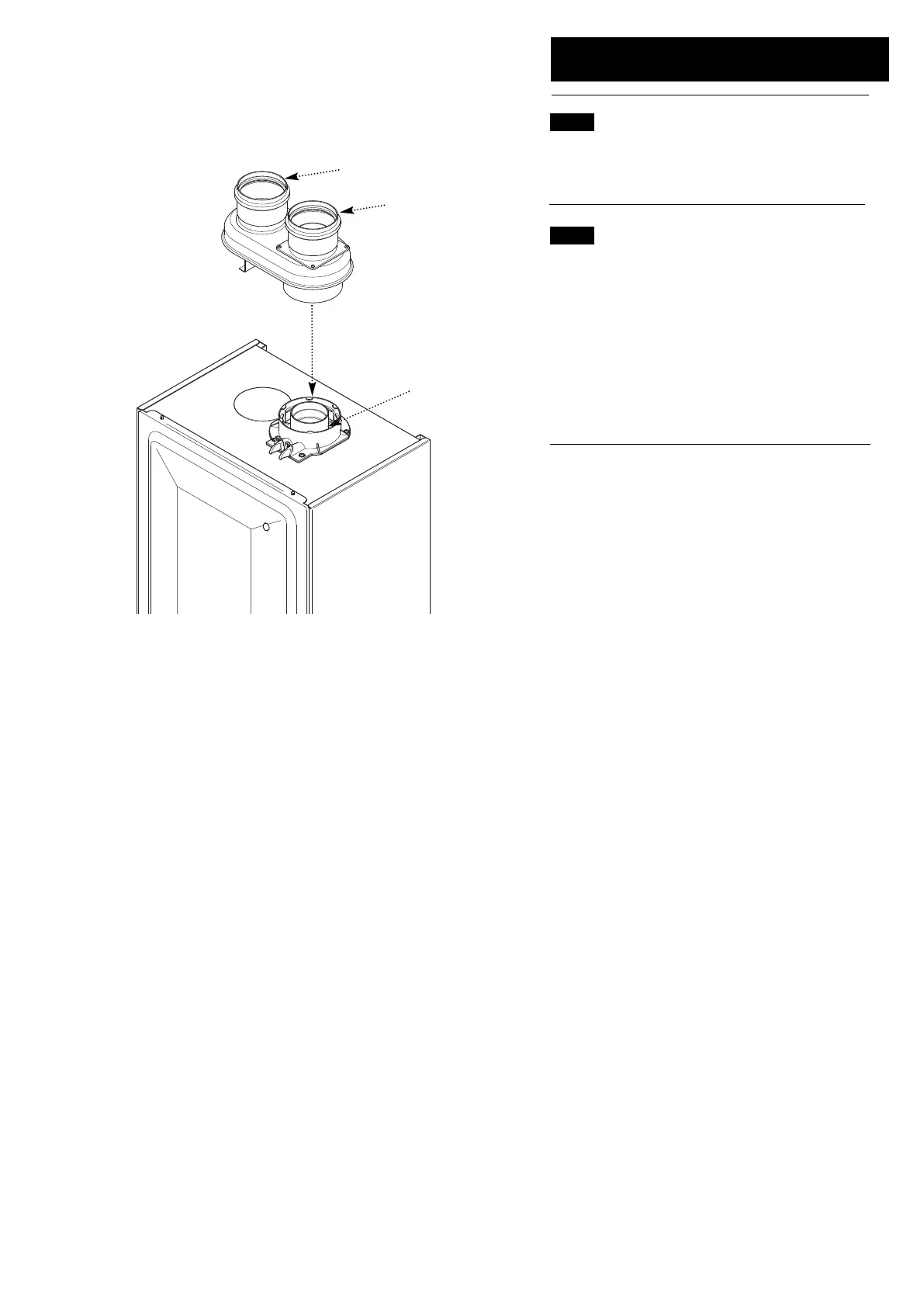 1. Engage the twin flue duct adaptor in the boiler adaptor,