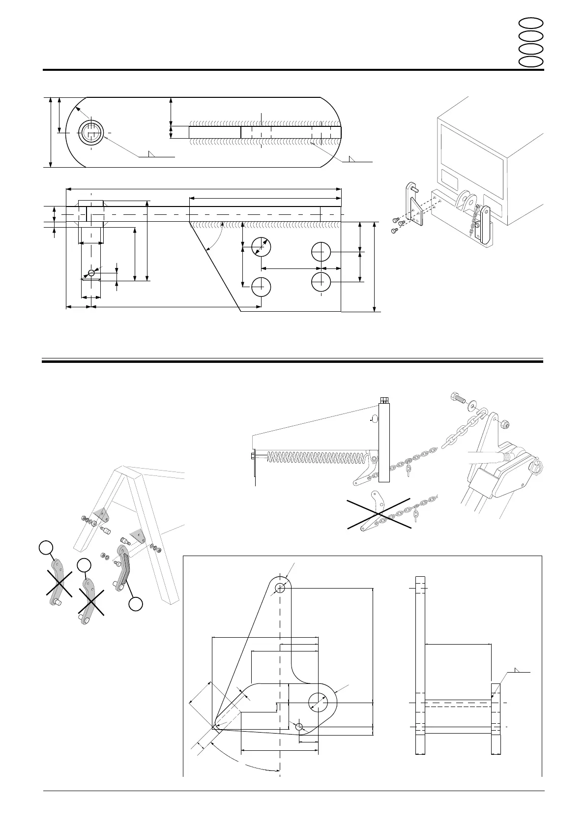 Am Mähwerk ist der linke Hebel (H) und die Kette zu
