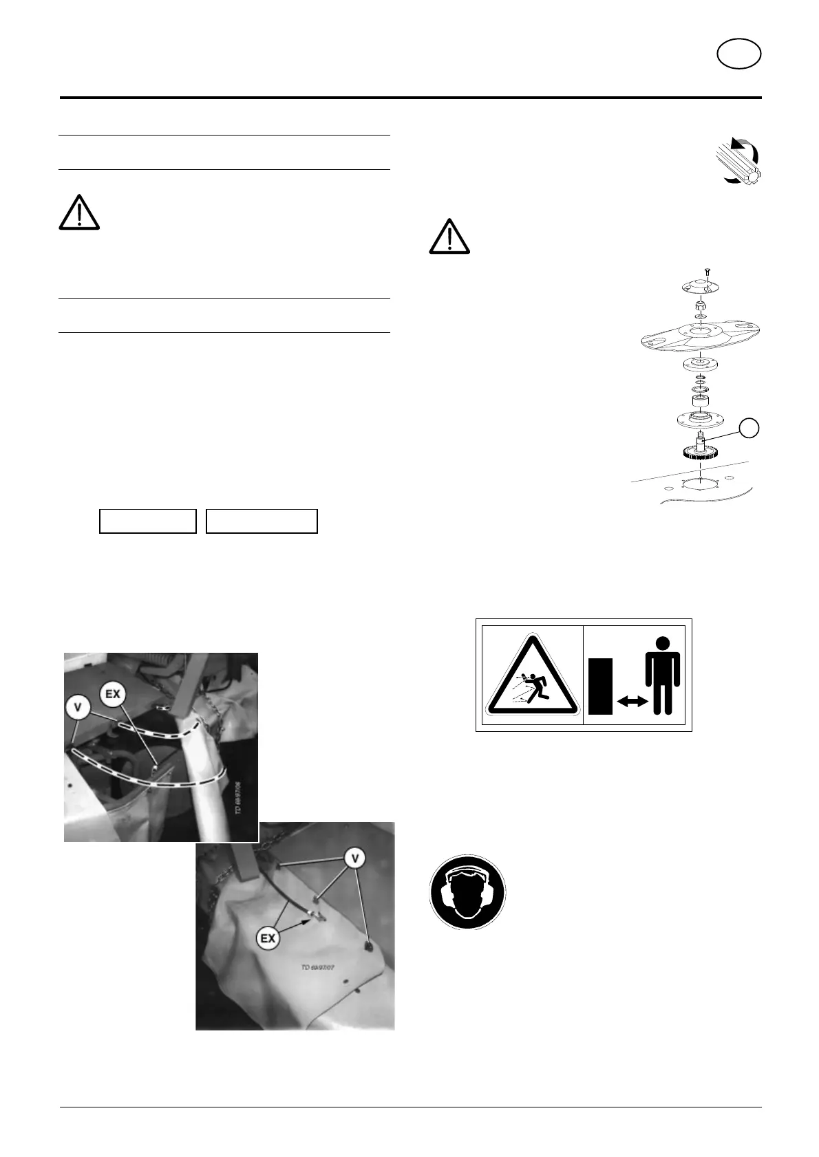 • Turn the p.t.o. on only when all safety devices (coverings, protective