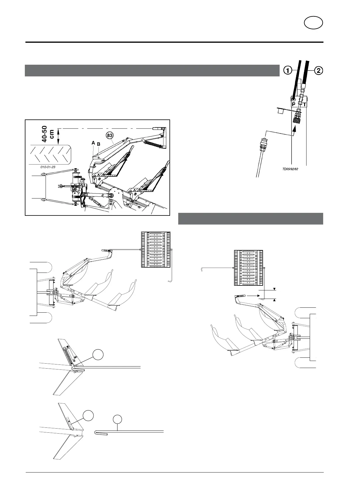 • A T screw fitting with a plug-in coupling sleeve is fitted to the return line (T) on the plough turning cylinder.