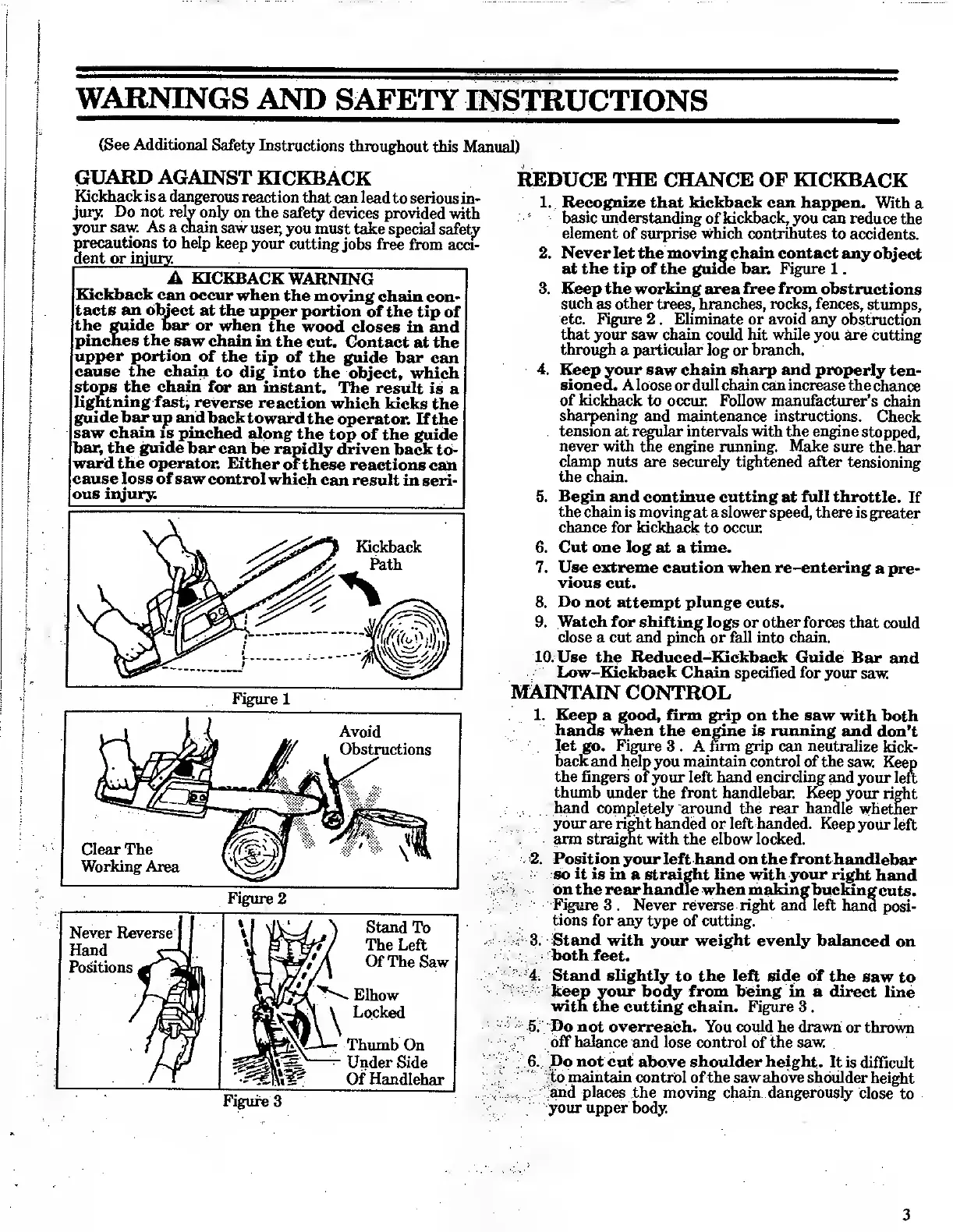 Poulan Pro 285 - Warnings and Safety Instructions