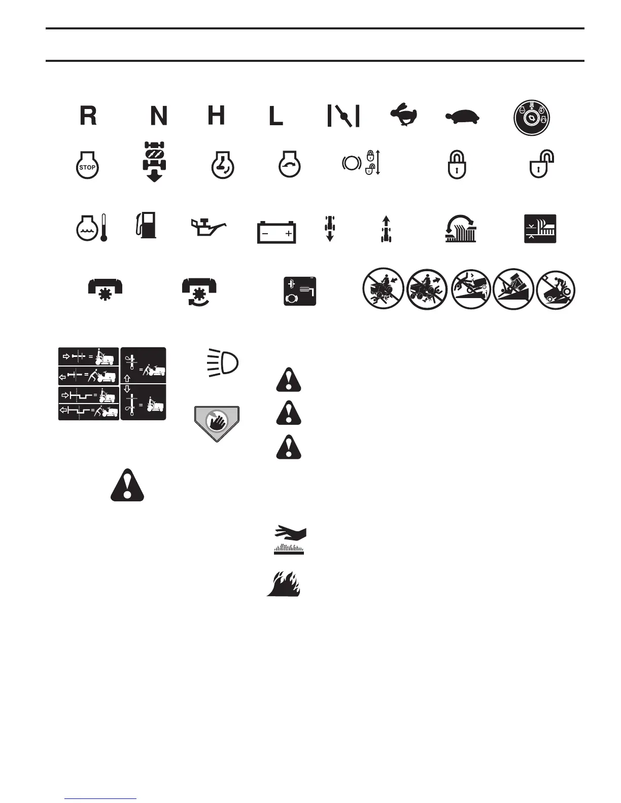 These symbols may appear on your tractor or in literature supplied with the product. Learn and understand their meaning.