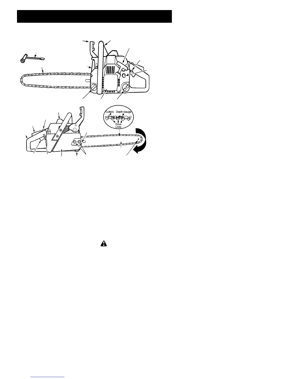 CHAIN SAW. Compare the illustrations with your unit to familiarize yourself with the location of