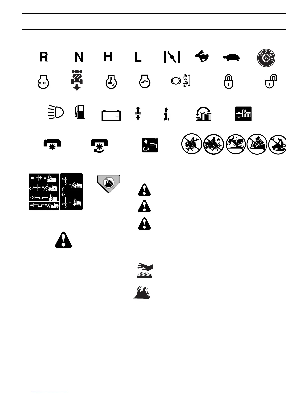 These symbols may appear on your tractor or in literature supplied with the product. Learn and understand their mean-