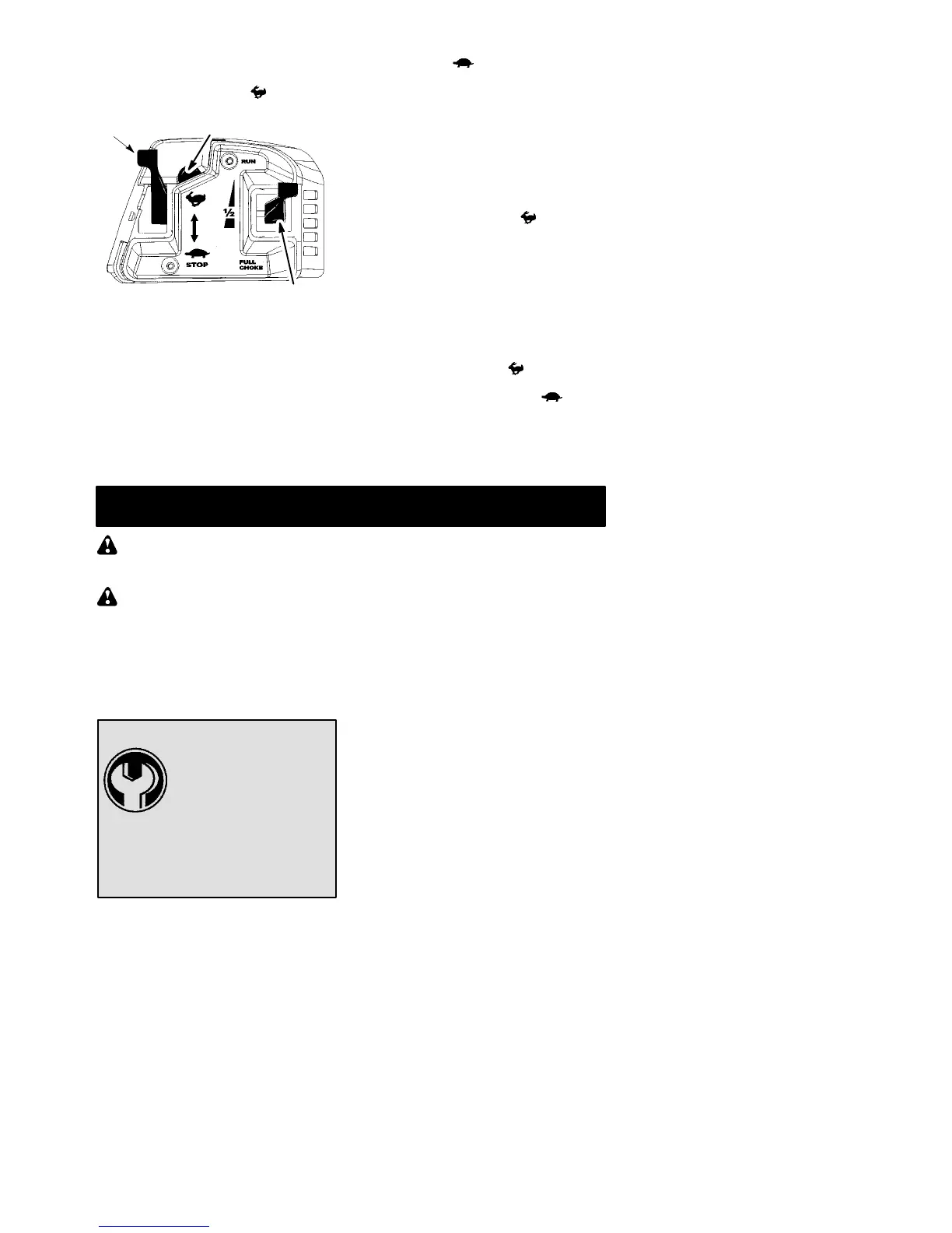 choke lever in the RUN position. Move throttle