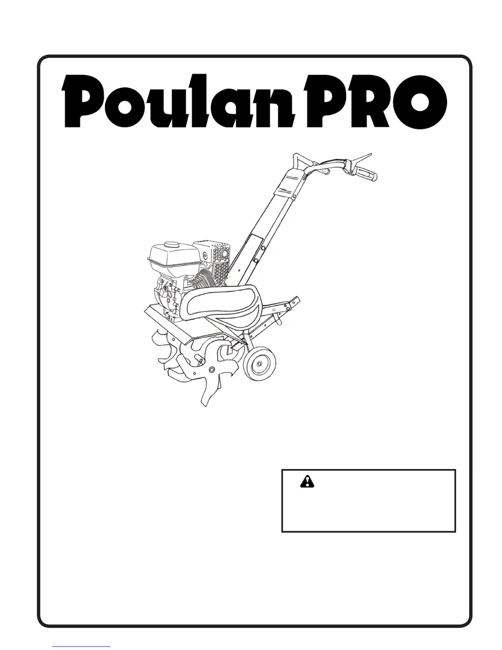 If your Poulan Pro Tiller won't start, there are several potential reasons. The fuel tank may be empty, so you should fill it. The fuel valve or engine switch might be in the “OFF” position; if so, turn them to “ON”. The engine may not be properly choked, so consult the “TO START ENGINE” section in the Operation section. If the engine is flooded, wait a few minutes before trying again. Other possible causes include a bad spark plug (replace or adjust the gap), a dirty air filter (clean or replace it), or water in the fuel (empty the fuel tank and carburetor, then refill with fresh gasoline).
