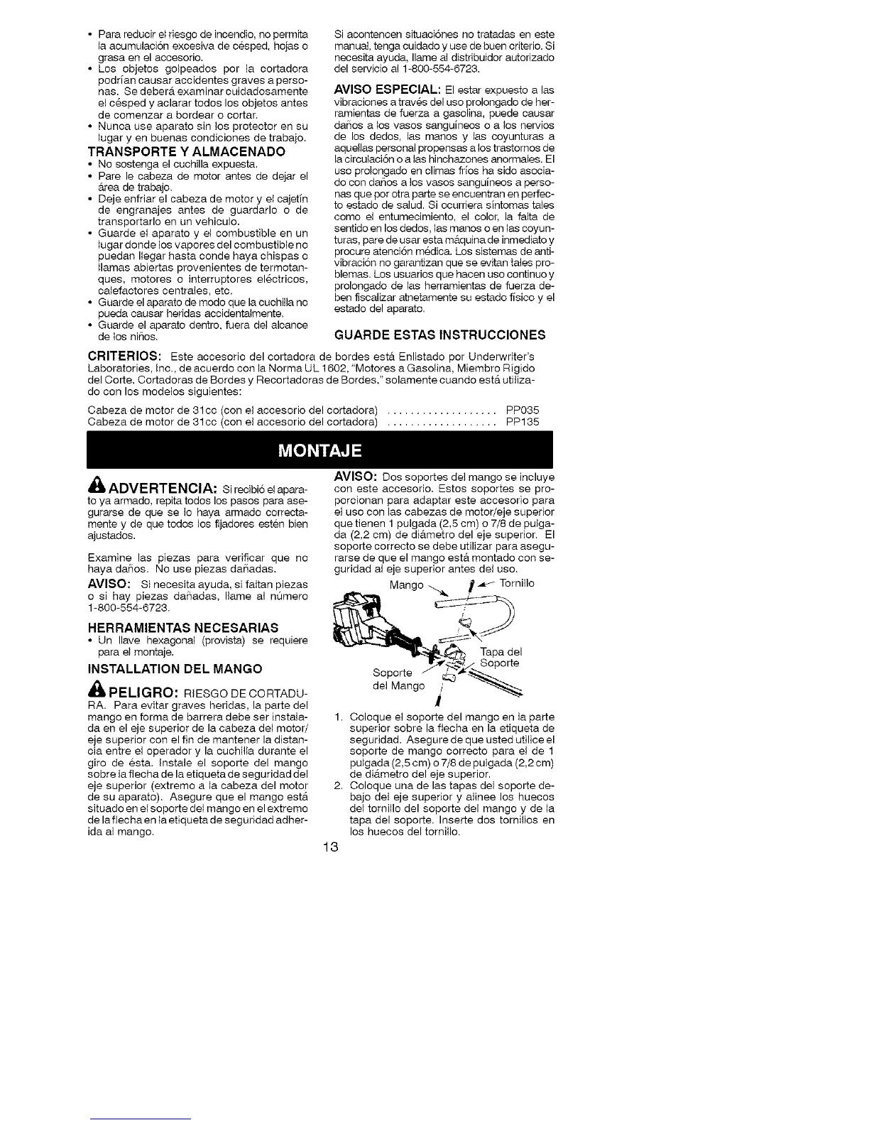 Cabeza de motor de 31cc (con el accesorio del cortadora ................... PP135