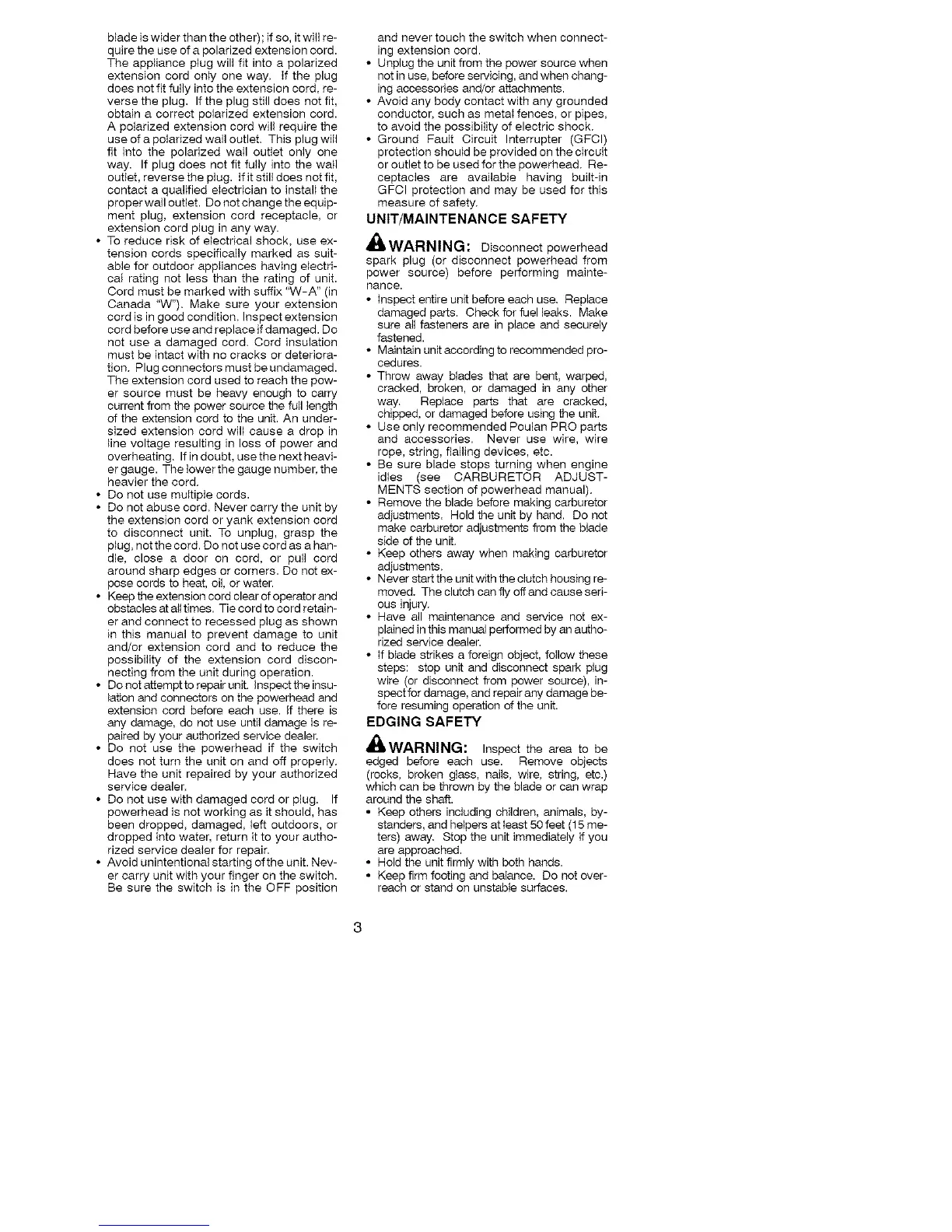 • Use only recommended Poulan PRO parts